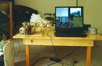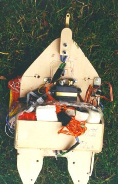 The R/C skydiver test rig. This field tested the chute, the cut-away circuits,