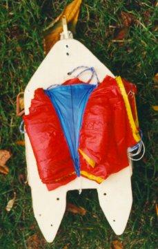 photo. The parachute itself weighs about 170 grams including all rigging, has